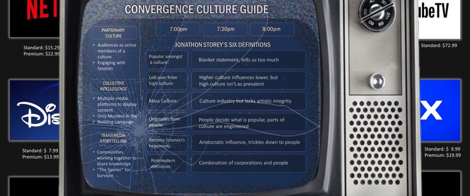 Henry Jenkins’s book Convergence Culture: Where Old and New Media Collide published in 2006 coins a postmodern definition of popular culture as convergence culture. Jenkins discusses how popular culture has evolved with the production of new technologies and media companies. The Big Three no longer monopolize their market. Jenkins provides a definition of convergent culture, stating “By convergence, I mean the flow of content across multiple media platforms, the cooperation between multiple media industries, and the migratory behavior of media audiences who will go almost anywhere in search of the kinds of entertainment experiences they want.”5
